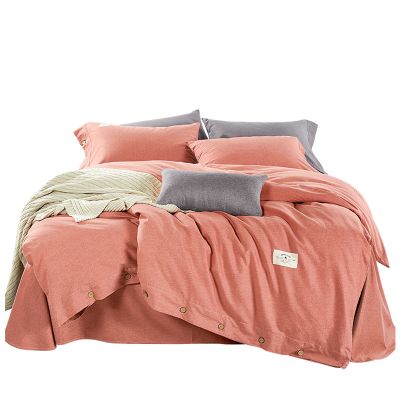 ins卡通风全棉水洗棉四件套 可爱小鸭毛巾绣纯棉被套亲肤床上用品